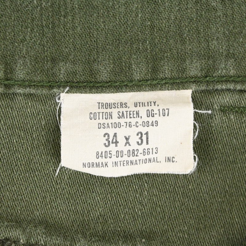 76’y SATEEN FATIGUE PANTS BUTTON FLY SIZE W33 L30