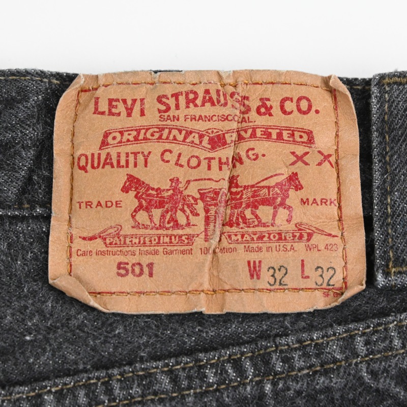 内タグが欠損しており製造年は分かりませんが、 90年代初頭頃の製造のLevi’s 501 Blackです。