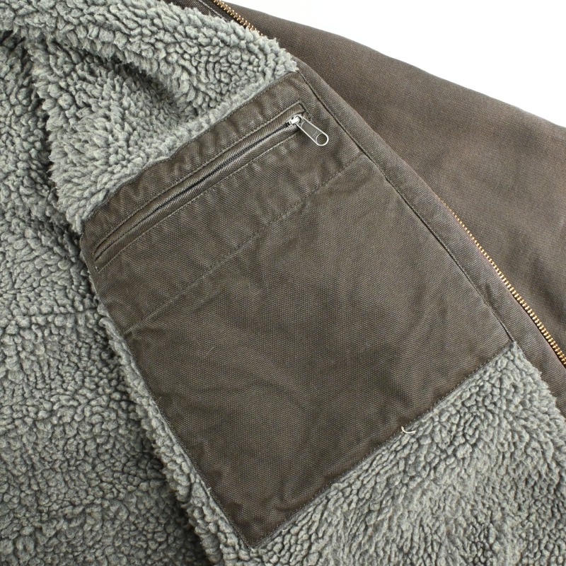キャンバス地特有のヒゲやアタリと裏地パイルの軽い潰れが見られますが、ホールなど着用に関わるダメージはございません。