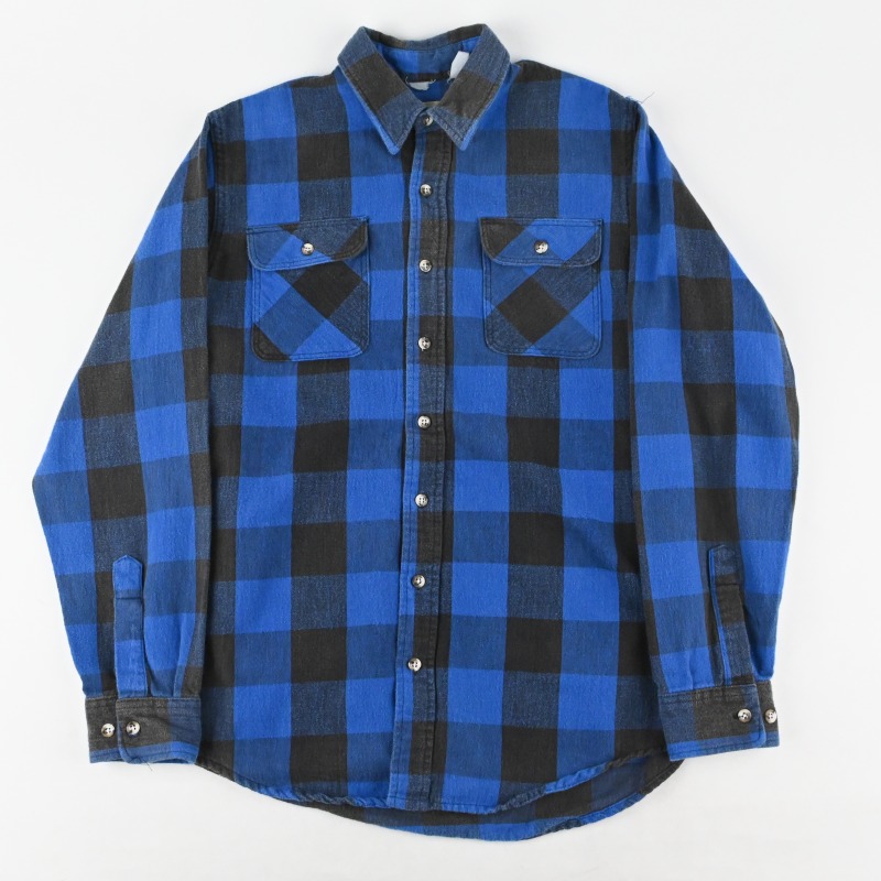 90’sのフランネルシャツです。 全体的に着用感と軽い褪色が見られますが、 ダメージや汚れは無く、比較的良好なコンディションです。