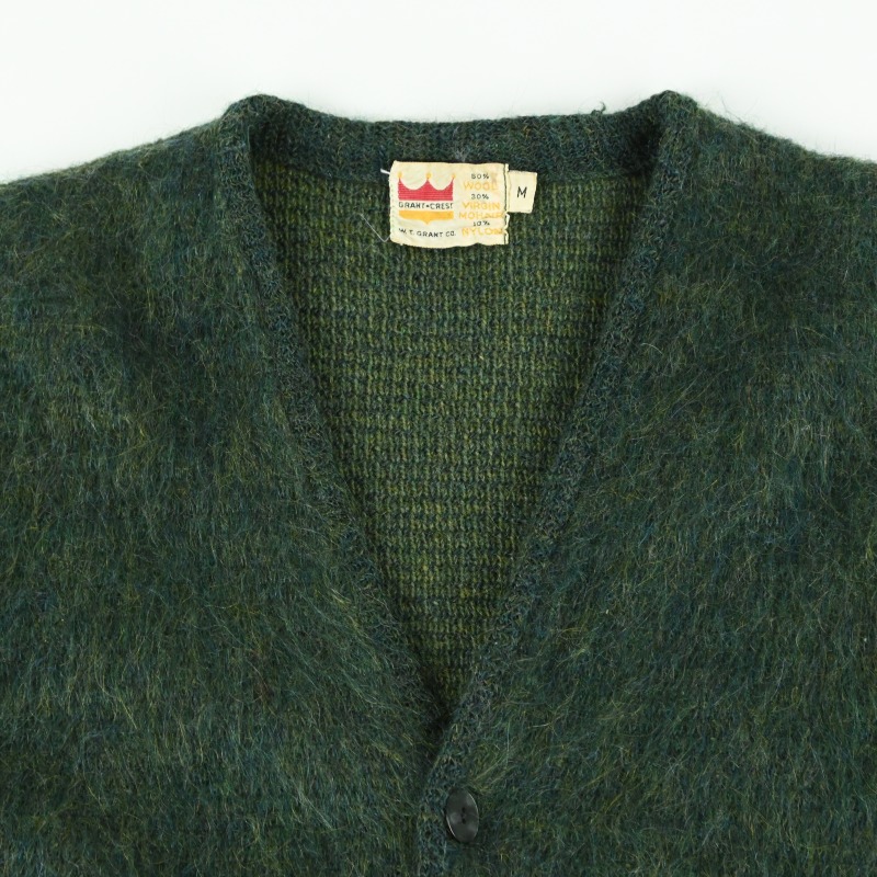 60年代頃のモヘア混紡の起毛糸が用いられたカーディガンです。