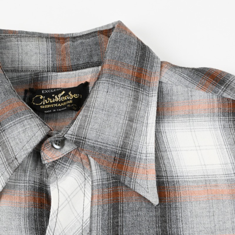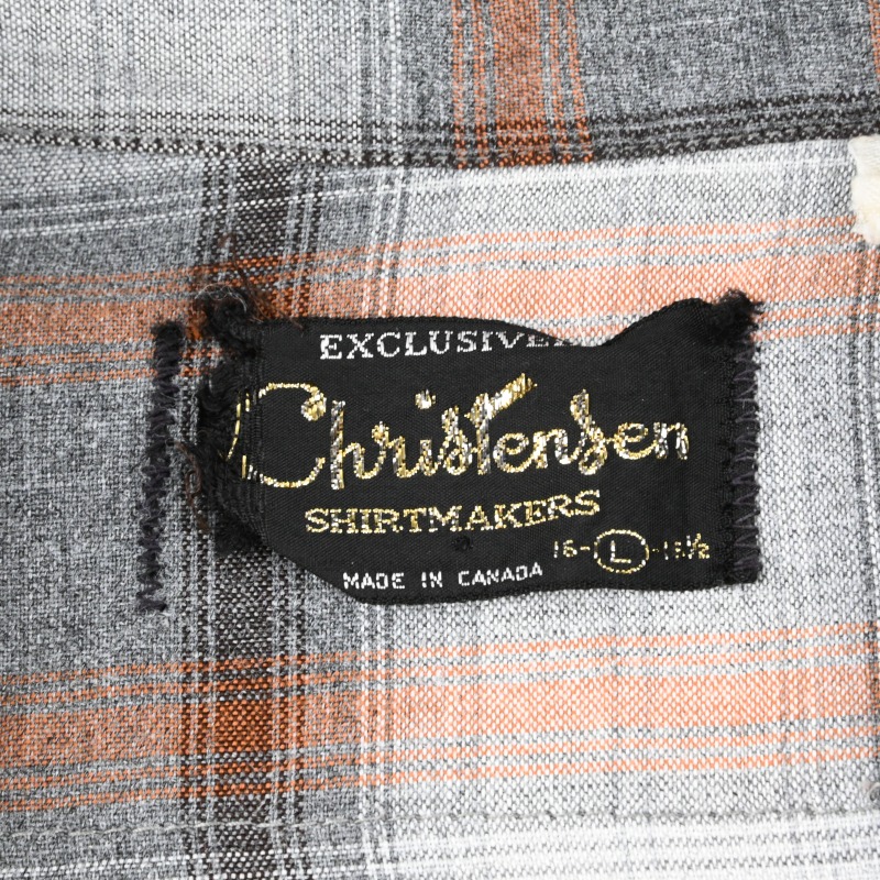 TOPS: L/S SHIRT > 70’s CHRISTENSEN SHIRT MAKERS OMBRE PLAID RAYON LOOP COLLAR SHIRT SIZE L