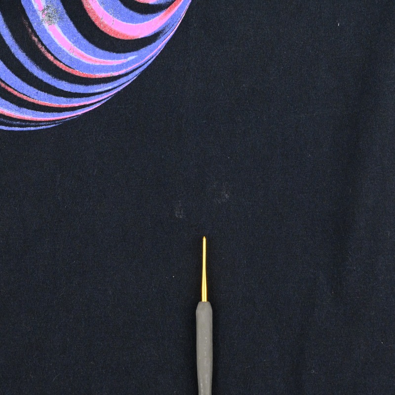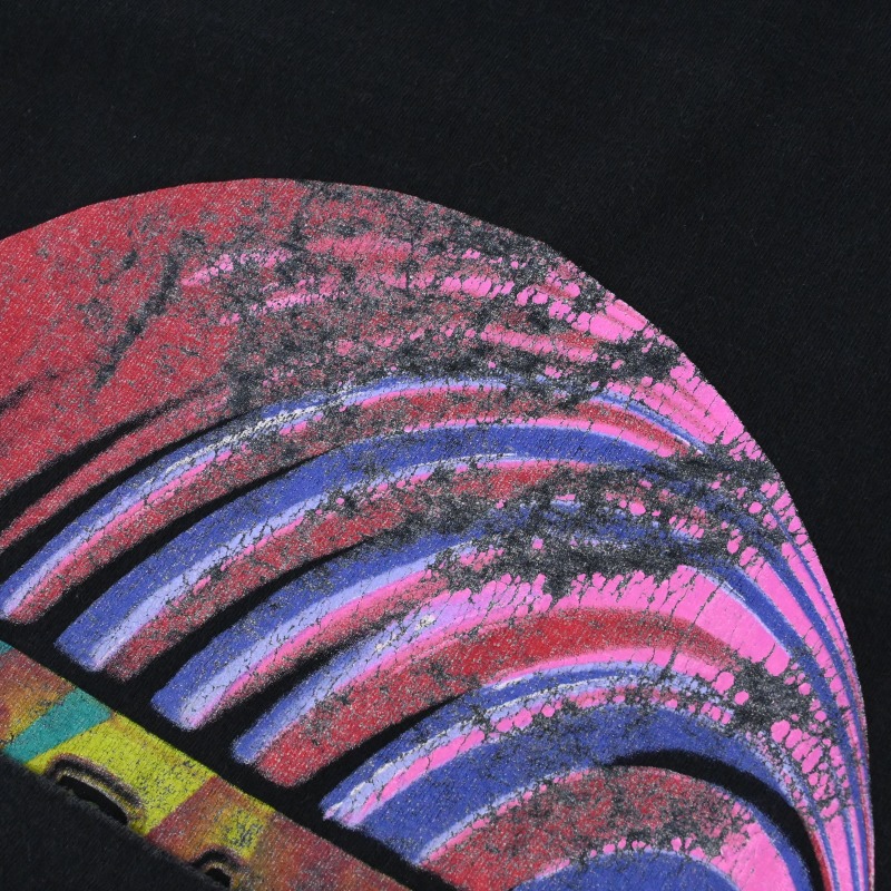 ボディ全体に退色とフロントに軽いブリーチ飛びとプリントの割れが見られますが、