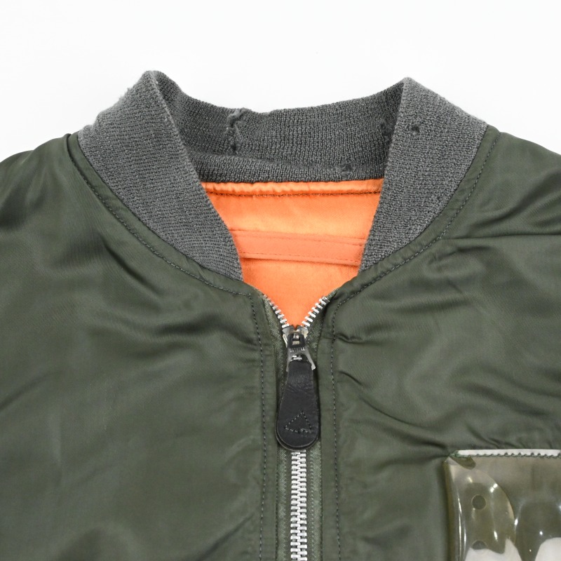 袖にパッチを外したステッチの跡がございます。(画像明るくしております)