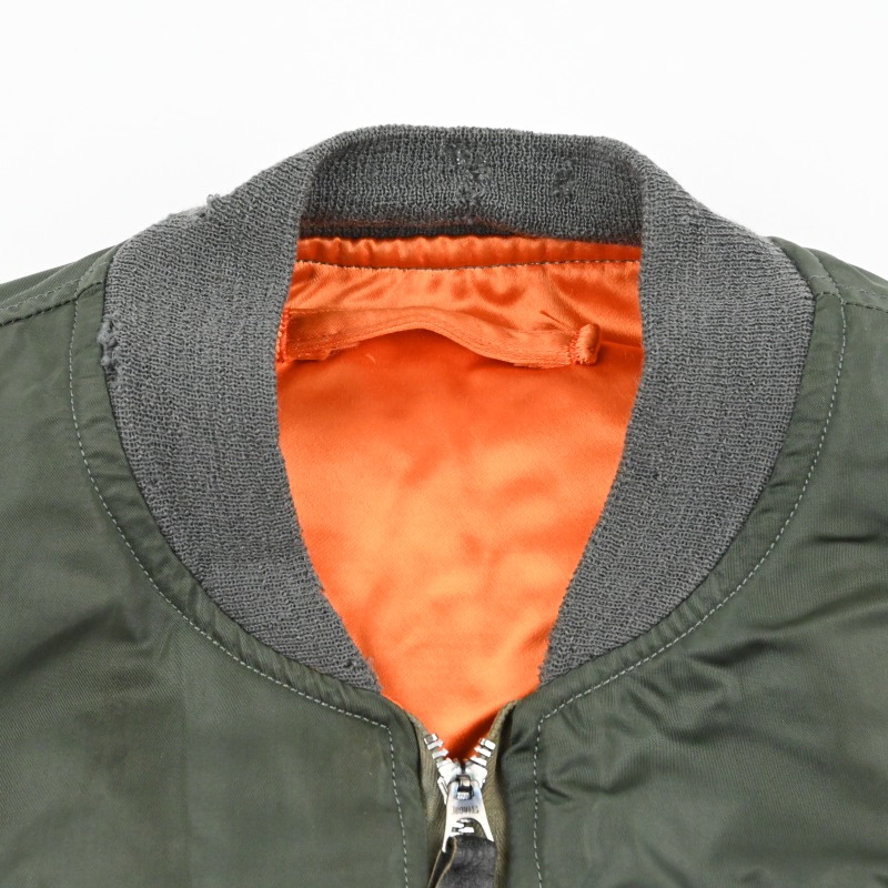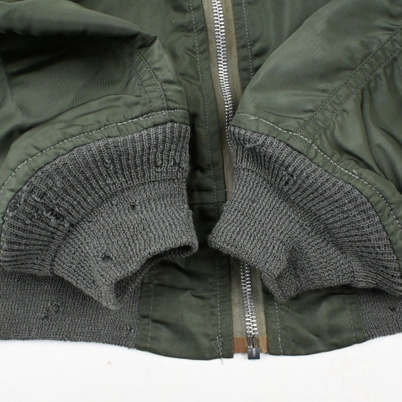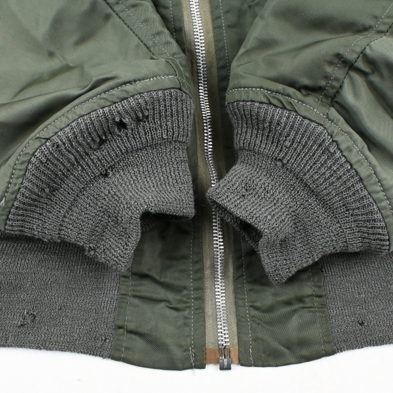 リブに複数個所小穴が見られるほか、袖やフロントに極小の汚れがございますが目立つものではなく、着用回数は多くないと思われ生地にも張りがあり全体的には非常に良好なコンディションです。