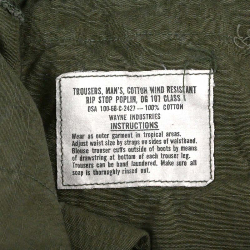 68年会計の米軍ジャングルファティーグパンツ、RIP STOPポプリン生地の4thモデルです。