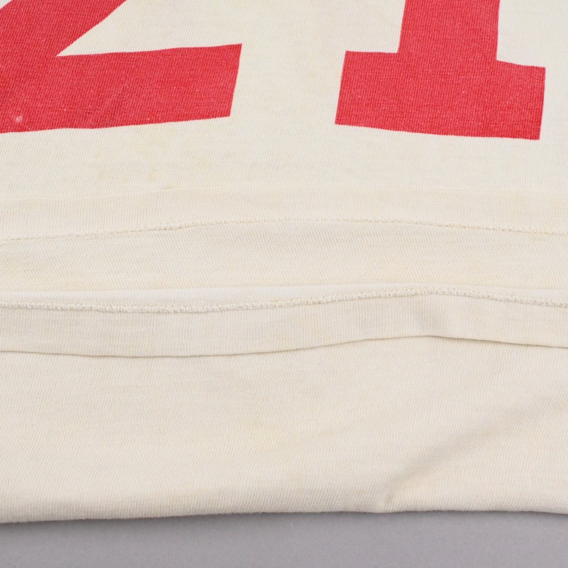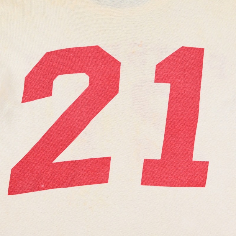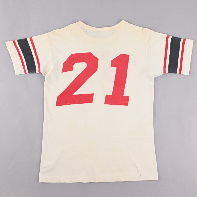 フットボールTシャツの中でも、袖にラインが入っており、ヨーク(胸部分の切り替え)がない点が特徴的な一枚です。