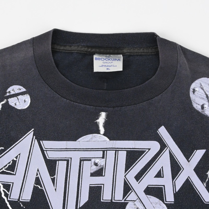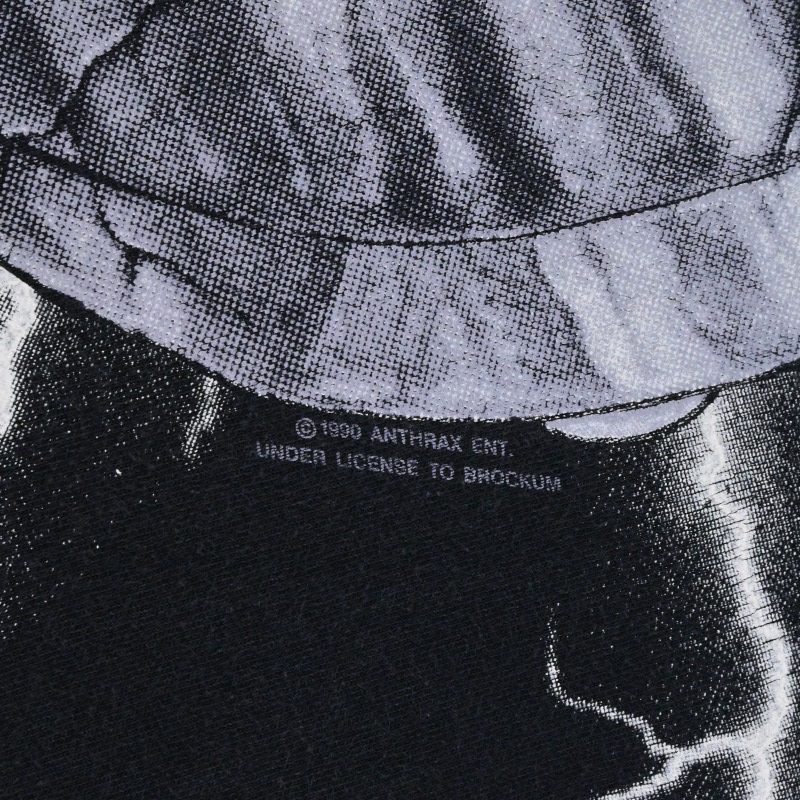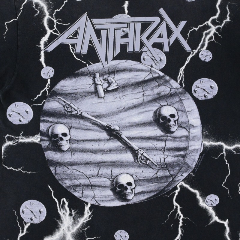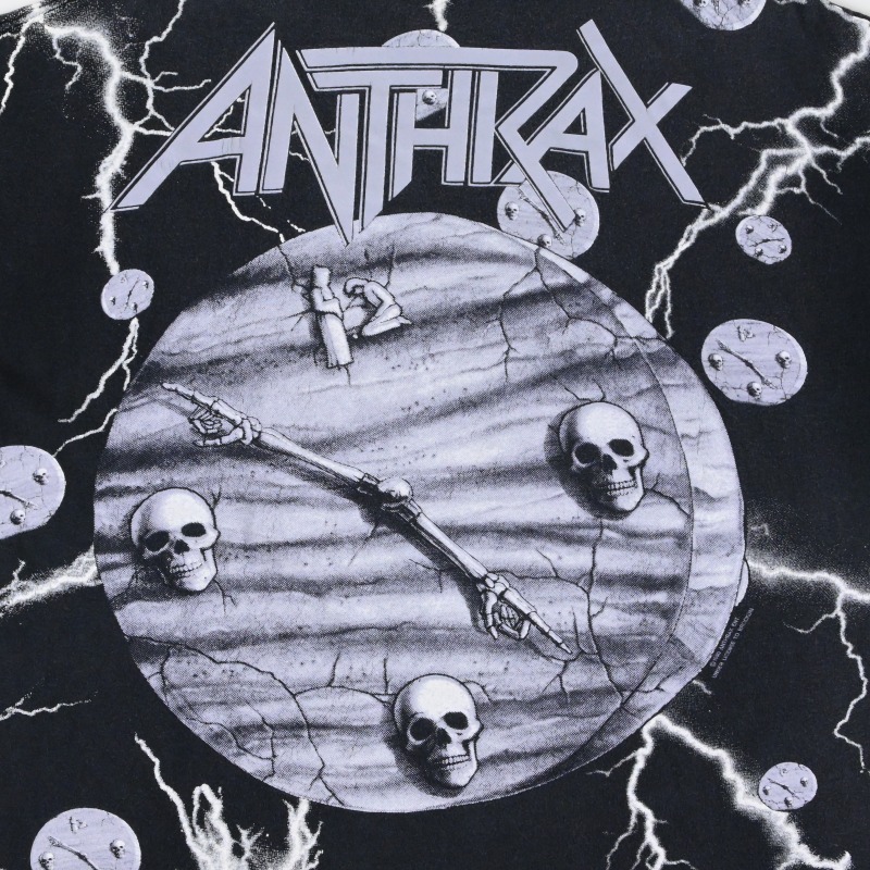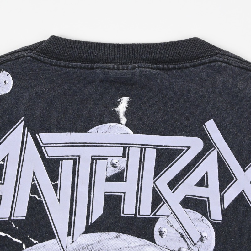 西海岸のMetallicaと同じくスラッシュメタル四天王に数えられる東海岸の雄、AnthraxのTシャツです。 NWOBHM、ハードコア、HIPHOPなど多ジャンルを横断した異色の音楽性で知られるバンドです。