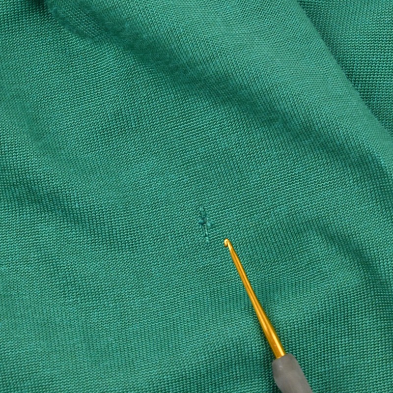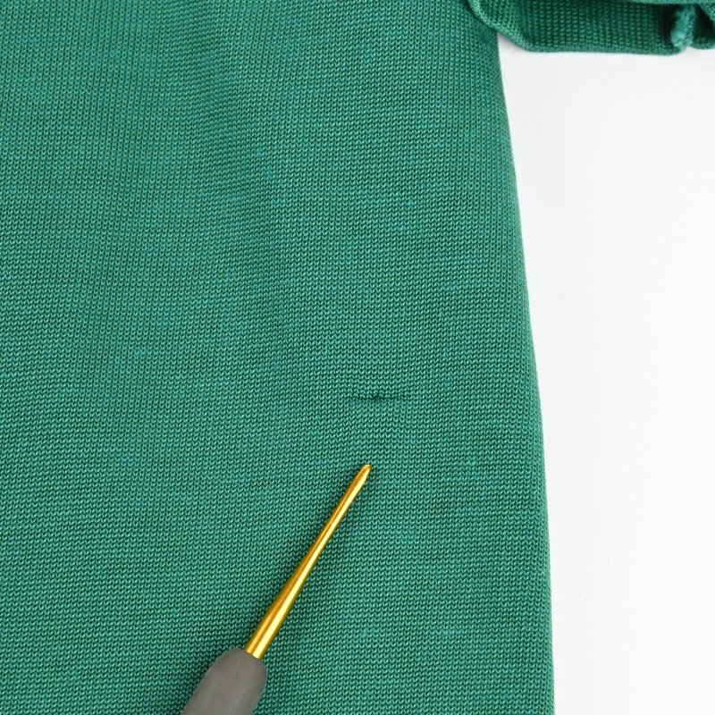 左袖エルボーパッチのステッチ飛びがございます。