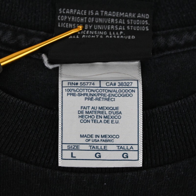 1983年公開のアル・パチーノ主演(監督:ブライアン・デ・パルマ)「SCAR FACE」の90年代後半から2000年代頃製造のTシャツです。