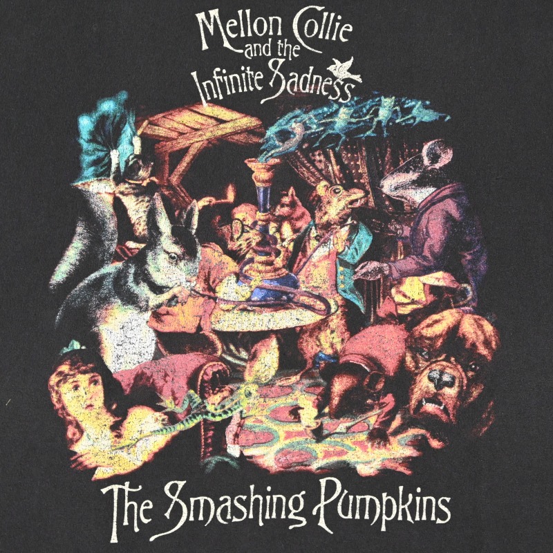 94年リリースのアルバム”Mellon collie and the infinite sadness”のリリース頃に販売されたTシャツで、通常版のジャケットカバーアートワークではなく、4LPの限定BOX SETにのみ使われたアートワークがプリントされております。