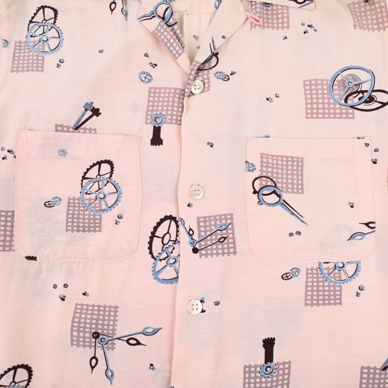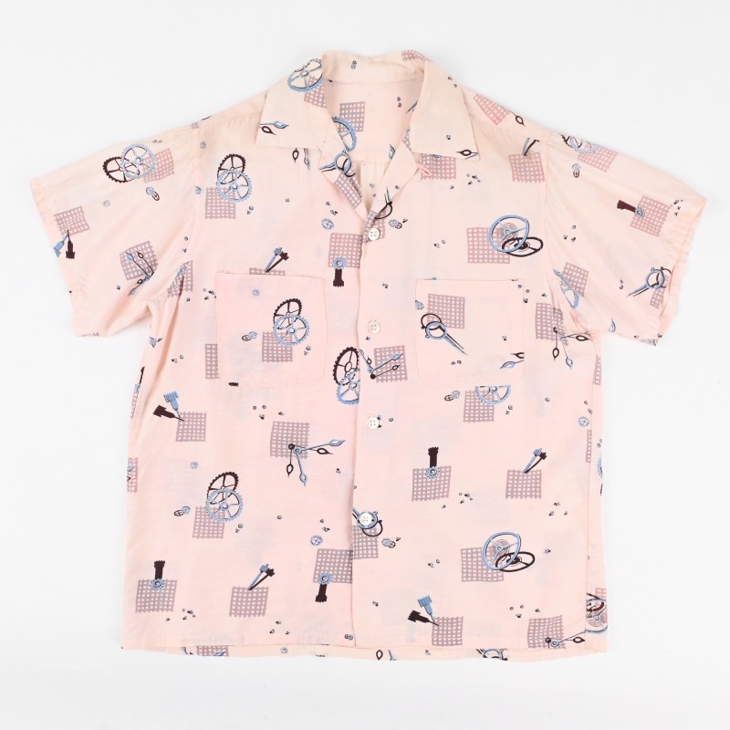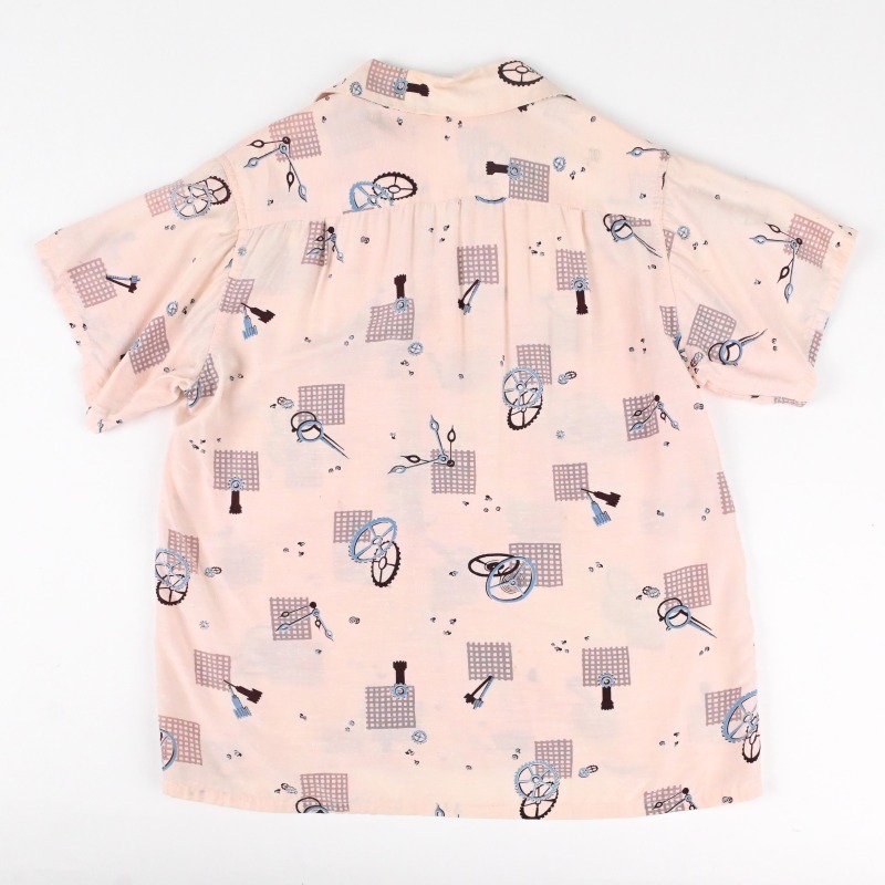 50’s WATCH COMPONENTS PATTERNED RAYON LOOP COLLAR S/S SHIRT