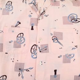 50’s WATCH COMPONENTS PATTERNED RAYON LOOP COLLAR S/S SHIRT |