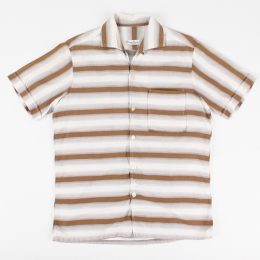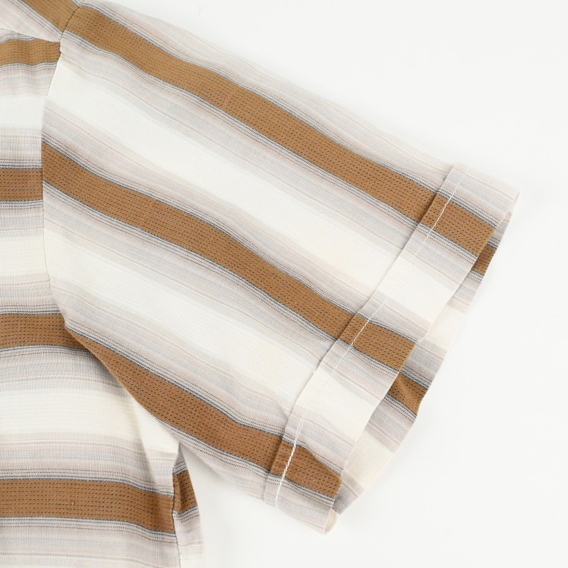 60’s ITALIAN COLLAR COTTON STRIPE S/S SHIRT SIZE S |
