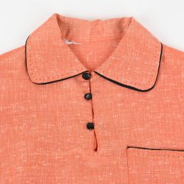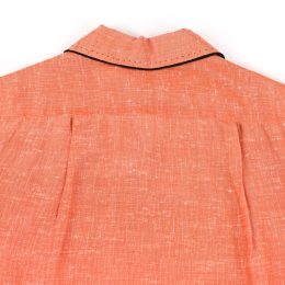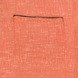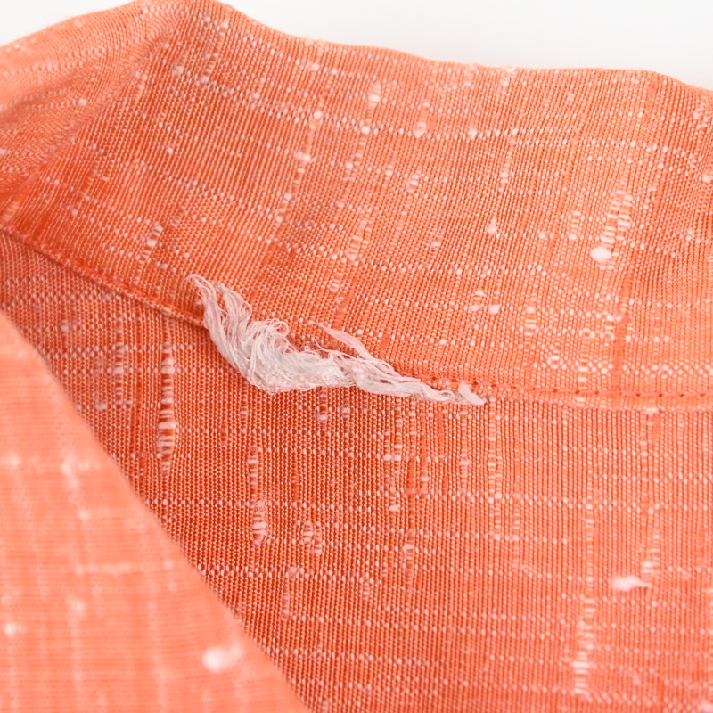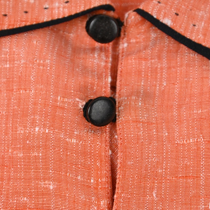1点物感の強い生地やハンドステッチ、襟やポケット裏に当てられたアクセントの黒い生地が印象的な1着です。