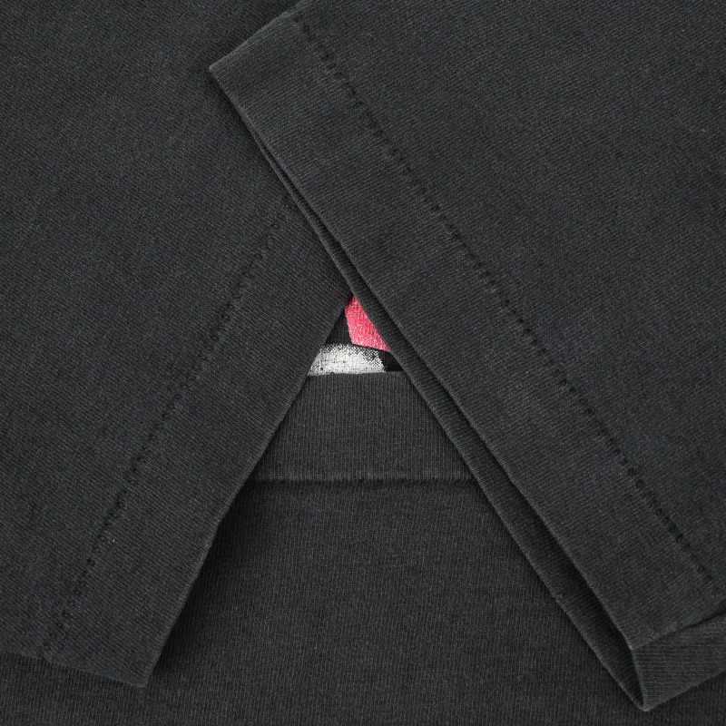 全体的に着用感及び退色、プリントの擦れが見られ、フロントに2箇所、背面に1か所ピンホールが見られます。