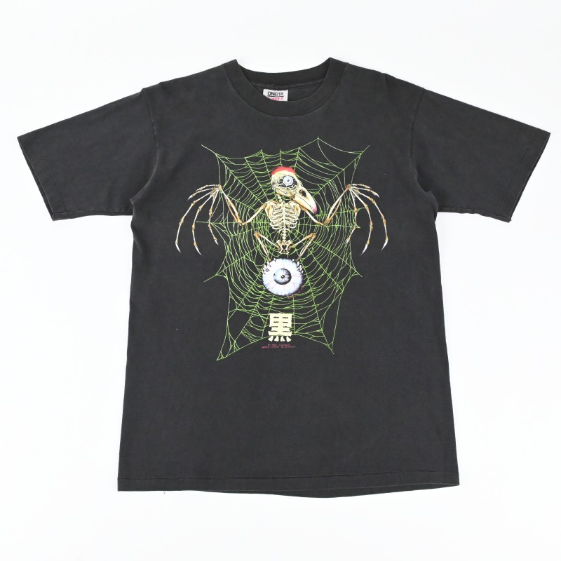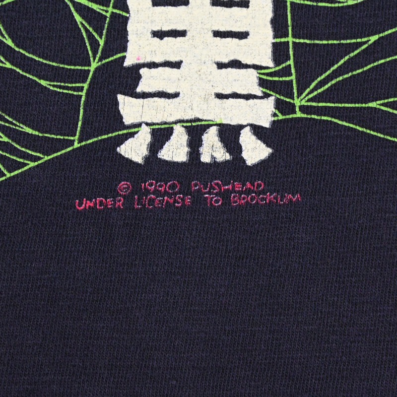 ハードコアやメタルなどU.S.のロックシーンとスケートボードへの愛を基点とし活動しているグラフィックアーティスト PUSHEAD のオリジナルマーチャンダイズ “黒”シリーズのTシャツです。
