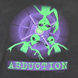 見下ろすエイリアン達と、拉致、誘拐などの意味のある名詞、Abductionと入るデザインです。