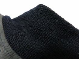 衿リブに虫食いがあります。