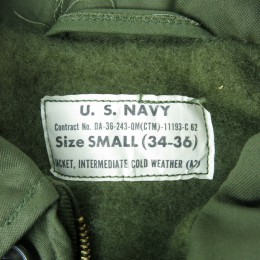 富山店の商品になります。 お電話でのお問い合わせ:076-492-8634 初期でSMALLのDEAD STOCKは別格です。 ましてやUSNのステンシルが入る方です。 コンディション:保管による汚れも殆ど無く非常に 綺麗なDEAD STOCKと言えます。 この初期MODELになるとN-1と比べても全く出て 来ませんしSMALLとなると非常に珍しくなります 去年辺りから特に注目されて来て今年は早くもボロ い物ですら見なくなりました。そしてこれは胸に USNのステンシルが入る方ですので持っておかれて も良い一着だと思います。お見逃し無く。 お探しの方は是非この機会にご検討ください。 神経質な方は、お店でのご購入でお願いします。 こちらの商品は全て店頭でも販売している為ご注文 頂いた時点で商品が欠品している可能性があります。 お手数を掛けますが電話かメールで連絡の上在庫 確認後の発送になります。 お支払い方法はクロネコヤマト代引き(クレジット可) のみになります。 返品は受け付けておりません。 ご了承の上お買い上げ下さい。