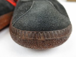 ソールの先端(上部接着部分のみ)踵付近(上部接着部分のみ)に少しだけ硬化が見られますが、ソール自体はしっかり曲げれる柔らかい状態を保っております。