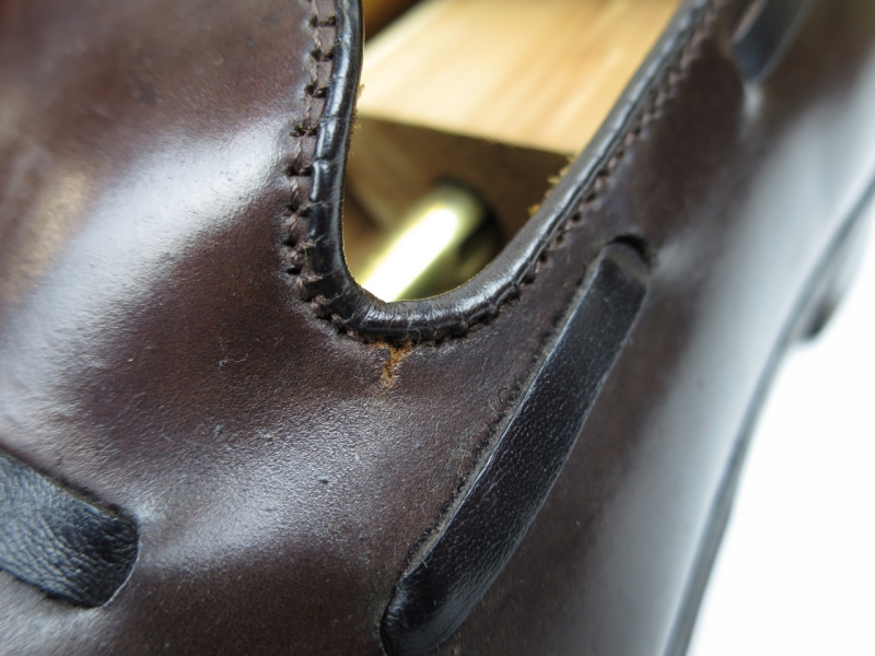 着用感は30%程で比較的綺麗なコンディションではあるのですが、履き口にほんの少し亀裂が生じております。