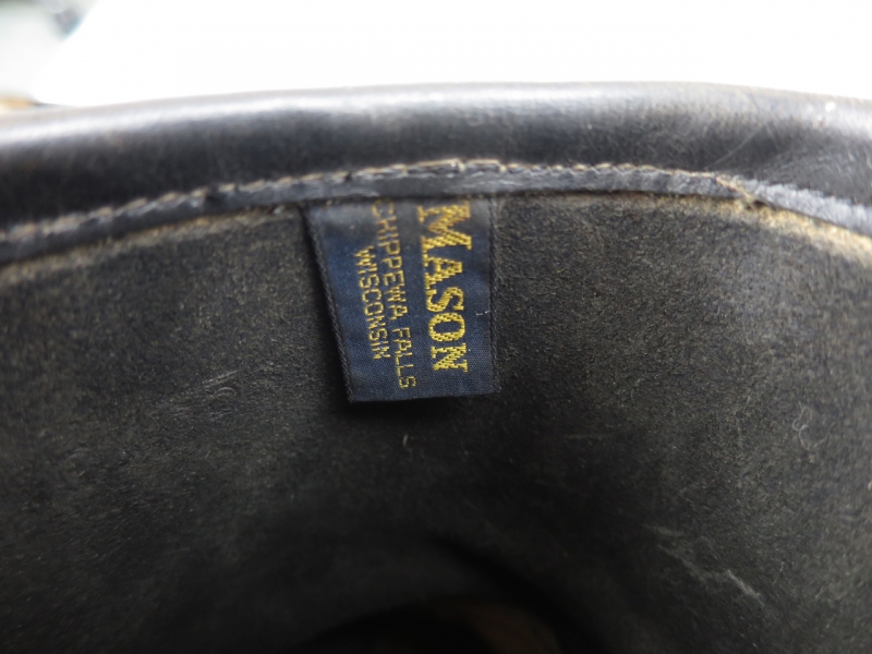 30%程度の使用感で非常に綺麗な状態です。このMASONなのですがREDWING工場だったりCHIPPEWAだったりしますがこの1足は