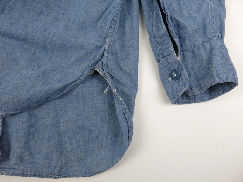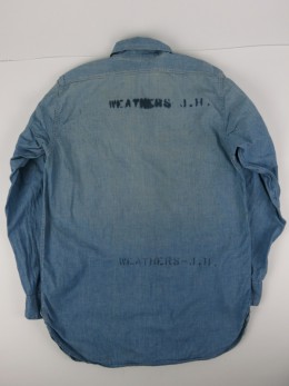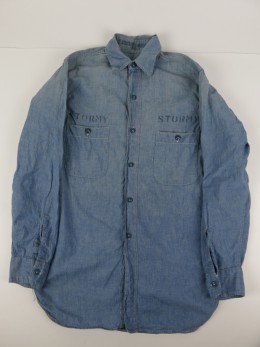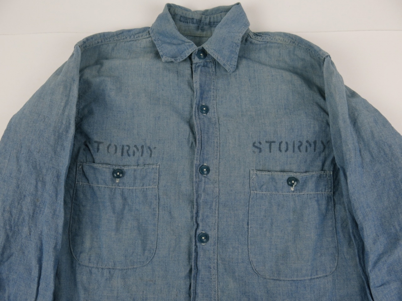 富山店の商品となります。 電話でのお問い合わせ:076-492-8634 久しぶりに良いUSNシャンブレーです。15も出ま せんが14&14ハーフになるとさらに見つからない のは皆さんもお分かりだと思います。 その中でこう言ったステンシルが入るものは貴重 だと思います。 CONDITION:〜50%程度の使用感で染み汚れ等 ありますが逆に雰囲気をUPさせて要ると思います 色落ちはありますが生地はまだしっかりしてるの でまだまだ、着用可能な良いCONDITIONです。 36~38位を着る方に合うでしょう。着方もありま すので実寸を参考にお考え下さい。 神経質な方は必ず店頭でお買い求めください。 こちらの商品は全て店頭でも販売している為ご注文 頂いた時点で商品が欠品している可能性があります お手数を掛けますが電話かメールで連絡の上在庫 確認後の発送になります。 返品は受け付けており ませんのでご了承の上お買い上げ下さい。