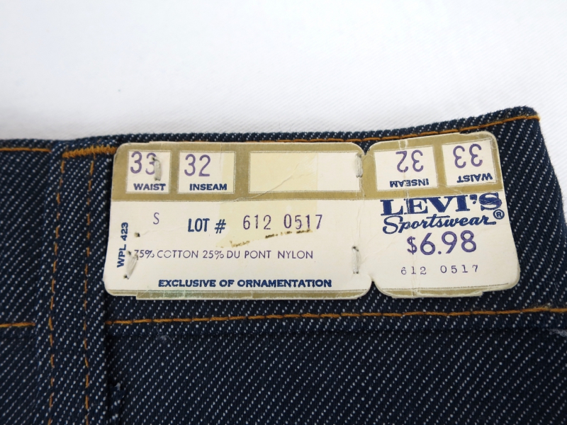 金沢店の商品になりますので、 電話でのお問合わせは076-210-7010へお願いします 606のSTRETCH版です。 この時代はLEEやWRANGでも同様のアイテムを出していましたね。 STRETCH入りのPANTSとしては初期のものになりますし、この時代ですので色落ちも悪くないでしょう。 606BIGEのDEADSTOCKが出れば¥128000位はつく時代になってきましたのでこの値段であれば悪くないかと思います。 サイズも見つかりにくいW-33です。 是非ご検討ください。 神経質な方は必ずお店でご確認ください。 こちらの商品は全て店頭でも販売している為ご注文 頂いた時点で商品が欠品している可能性があります。 お手数を掛けますが電話かメールで連絡の上在庫 確認後の発送になります。 返品は受け付けておりま せんのでご了承の上お買い上げ下さい。